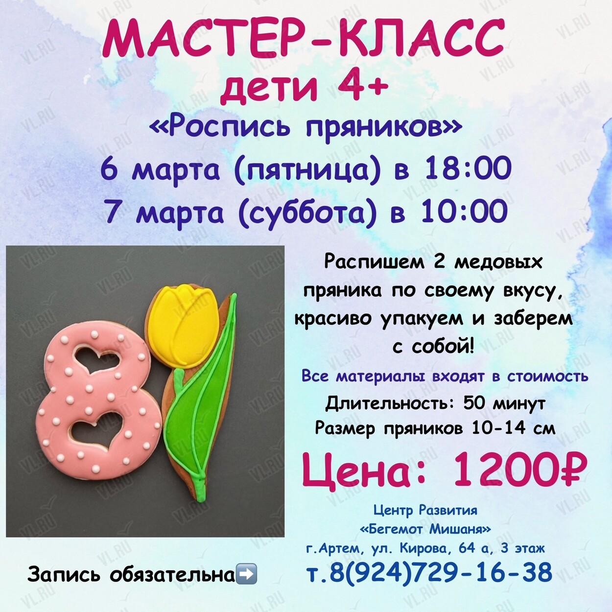 Мастер класс по росписи пряников в центре раннего развития «Бегемот Мишаня» пройдет 6 и 7 марта для детей от 4 лет!