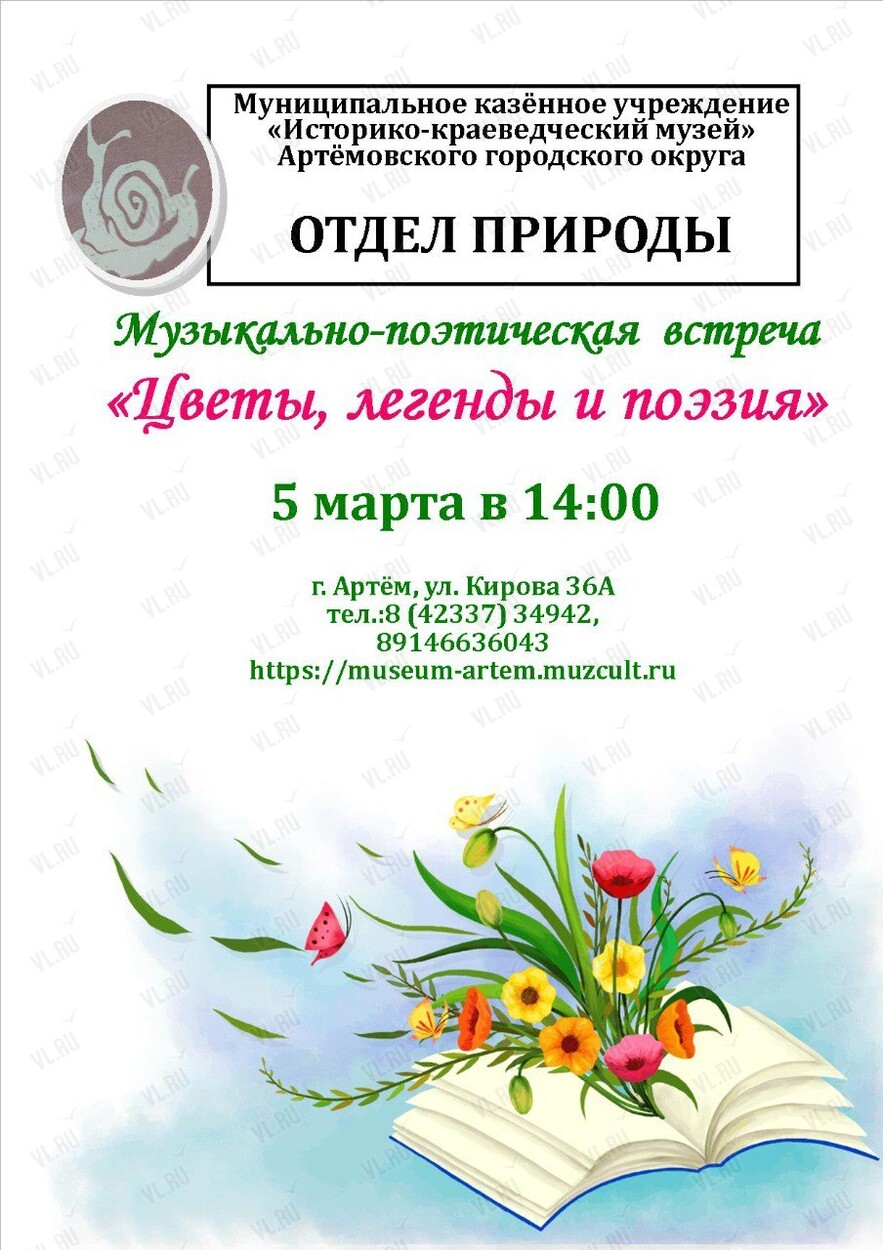 Отдел природы историко-краеведческого музея г. Артема приглашает артемовцев 5 марта принять участие в музыкально-поэтической встрече «Цветы, легенды и поэзия».
