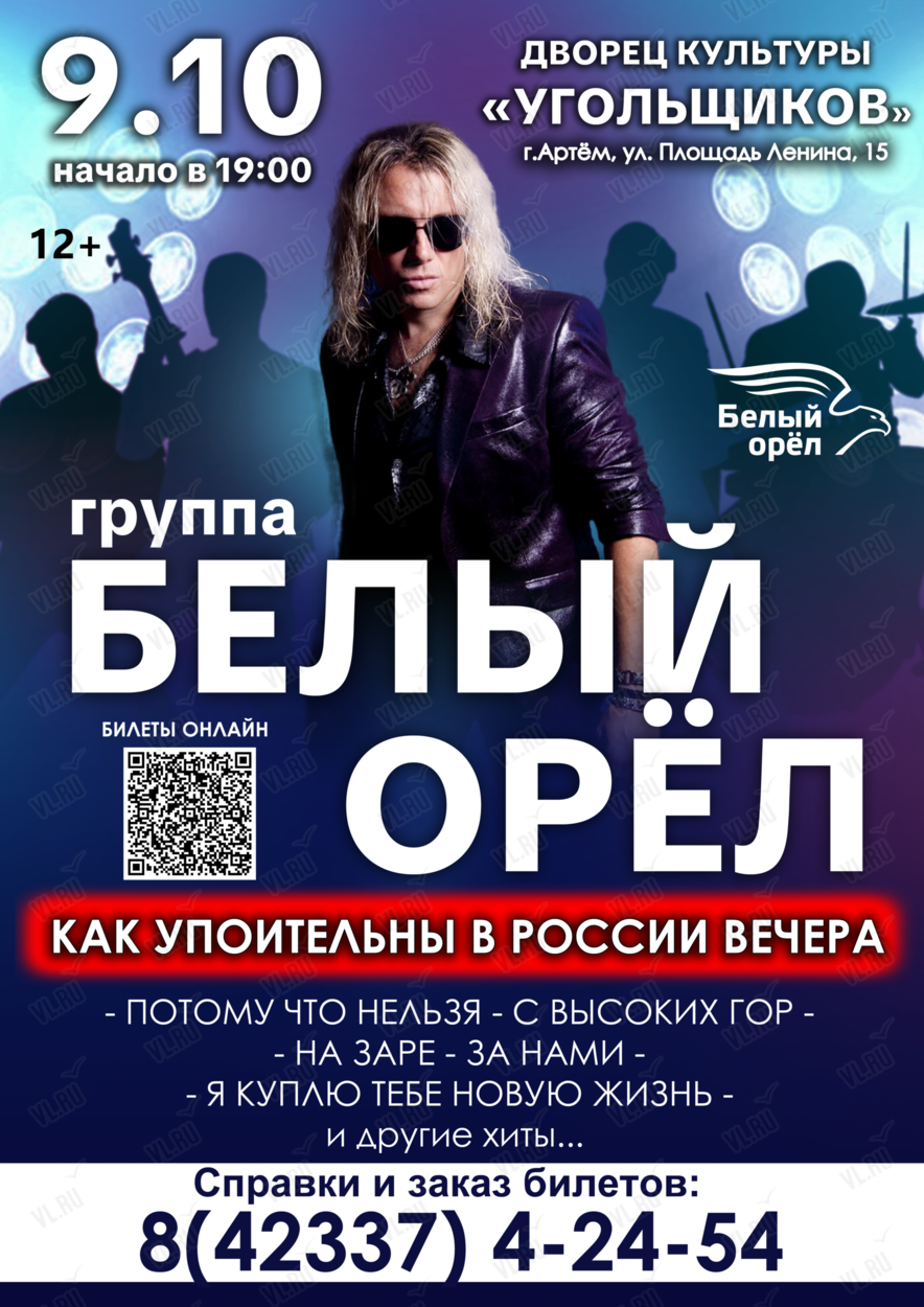 9 октября на сцене ДК Угольщиков города Артем состоится большой сольный концерт легендарной группы «Белый Орёл».