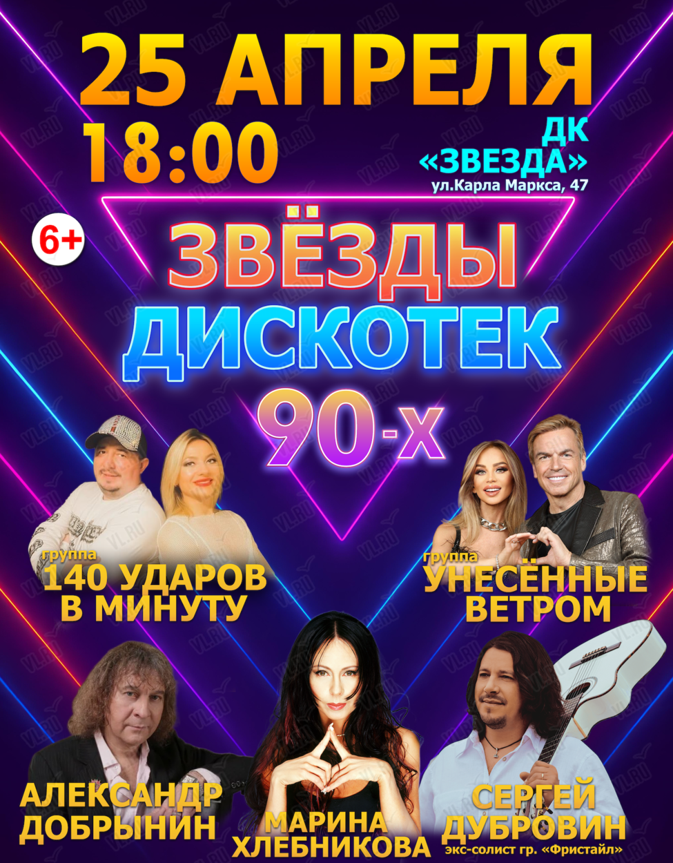 25 апреля на сцене ДК «Звезда» пройдет грандиозное танцевальное событие - концерт «Звезды дискотек 90-х».