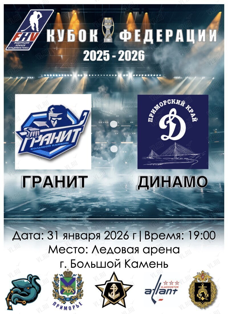 31 января в рамках турнира «Кубок Федерации» пройдет хоккейный матч: Гранит – Динамо!