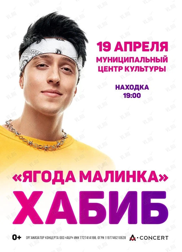 19 апреля на сцене Муниципального центра культуры г. Находка выступит Хабиб!