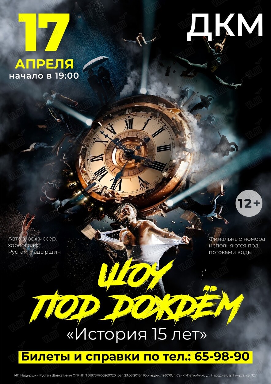 Санкт-Петербургский театр танца Рустама Надыршина представляет премьеру юбилейного спектакля – Шоу под дождём «История 15 лет».