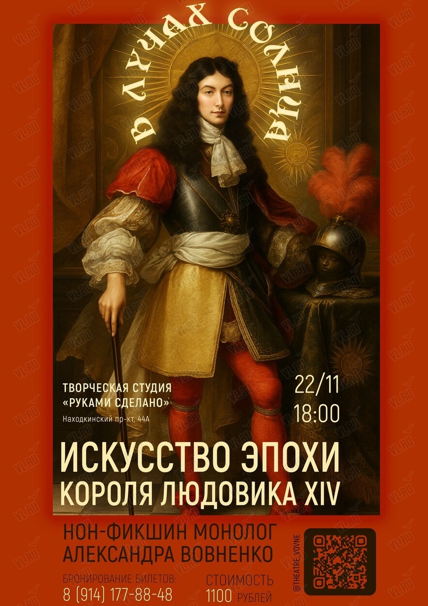 22 ноября в творческой студии «Руками сделано» пройдет НОН-ФИКШН монолог «В лучах солнца. Искусство эпохи Людовика XIV»!