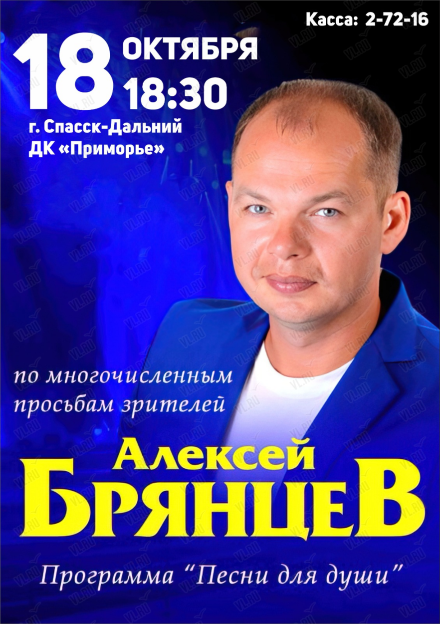 18 октября на сцене ДК "Приморье" пройдет сольный концерт Алексея Брянцева.