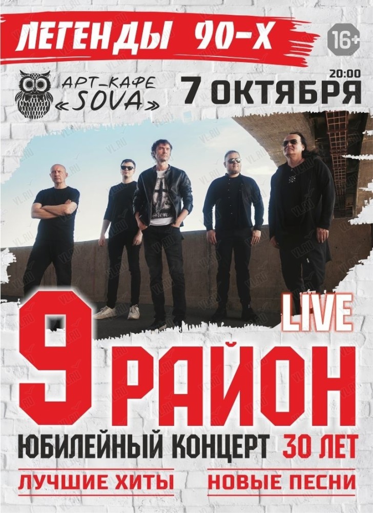 7 октября в кафе "Сова" состоится юбилейный концерт группы "9 район".