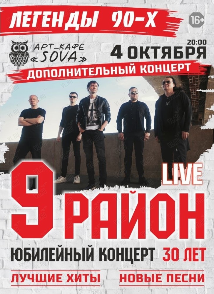 4 октября в кафе "Сова" состоится юбилейный концерт группы "9 район".