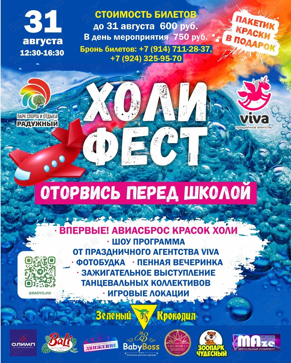 Стоимость билетов до 31.08. - 600 руб., в день мероприятия - 750 руб. (пакетик краски в подарок).