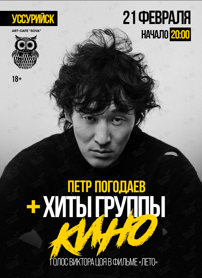 21 февраля на сцене арт-кафе «Sova» выступит Петр Погодаев с хитами группы «Кино»!