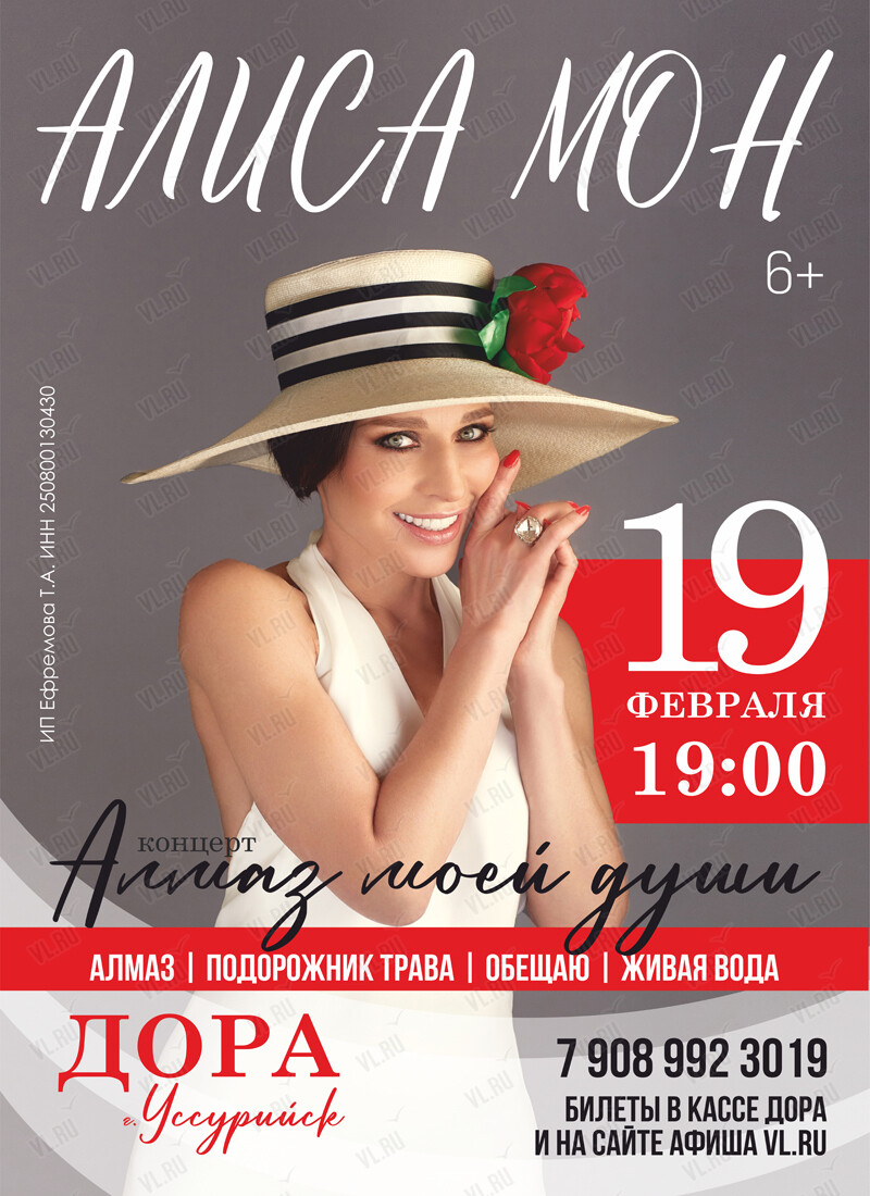 19 февраля на сцене ДОРА – Алиса Мон с концертом «Алмаз моей души»!
