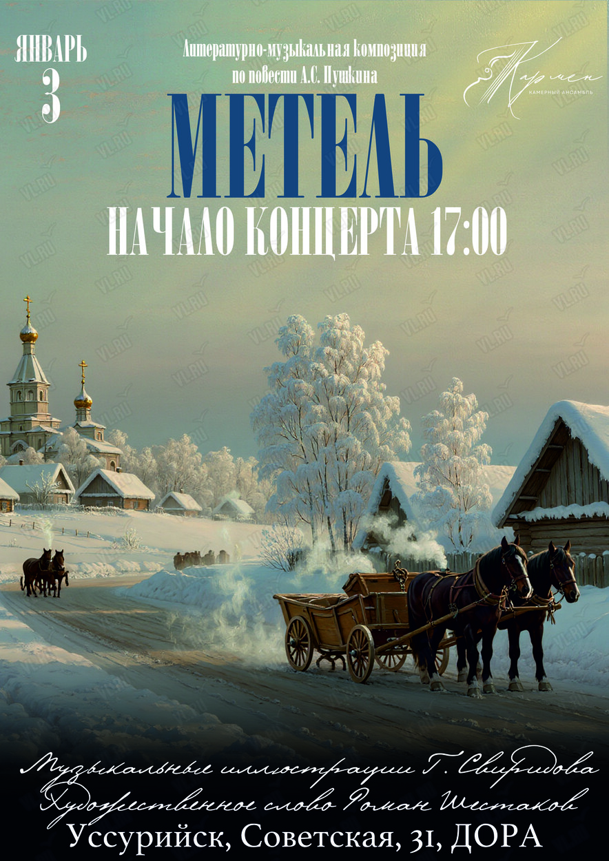 В новогодние праздники ансамбль едет к вам с известной на весь мир музыкально-литературной композицией «Метель» по повести А.С. Пушкина и музыкой Г.В. Свиридова.