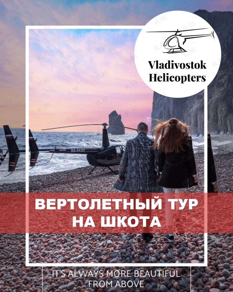 Вертолетная компания Vladivostok Helicopters предлагает вам насладиться воздушной экскурсией на вертолете над Владивостоком с остановкой на легендарном острове Шкота.