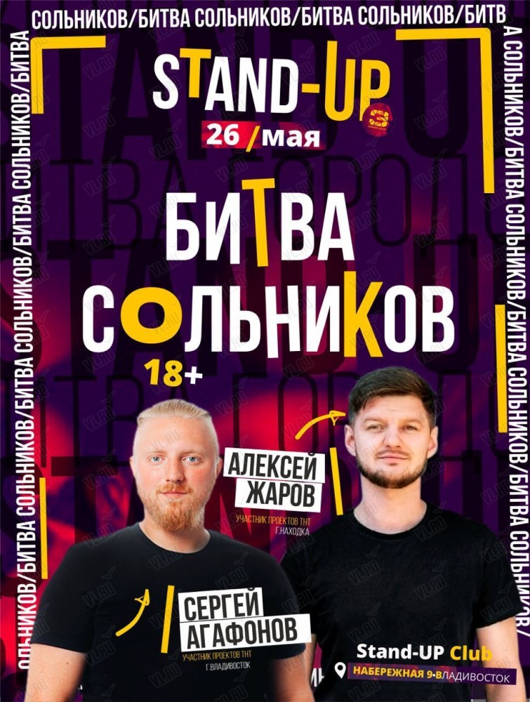 Stand Up битва: Сергей Агафонов VS Алексей Жаров. Для вас выступят участники проектов ТНТ и лучшие комики Приморья.