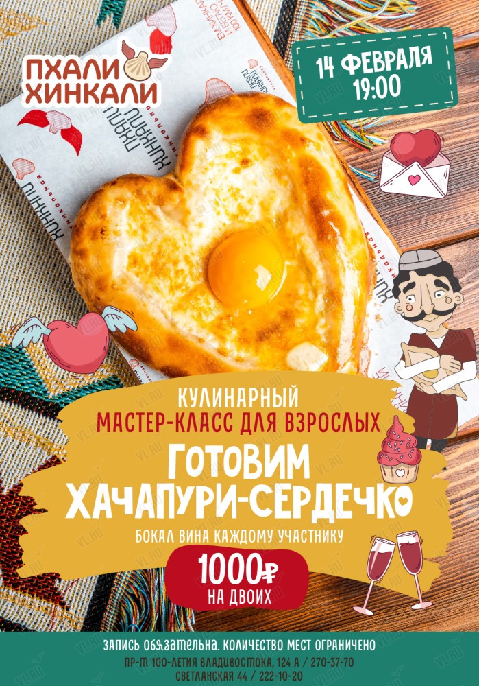 "Пхали-Хинкали" приглашает принять участие в кулинарном мастер-классе для взрослых "Лепим хачапури сердечко"!