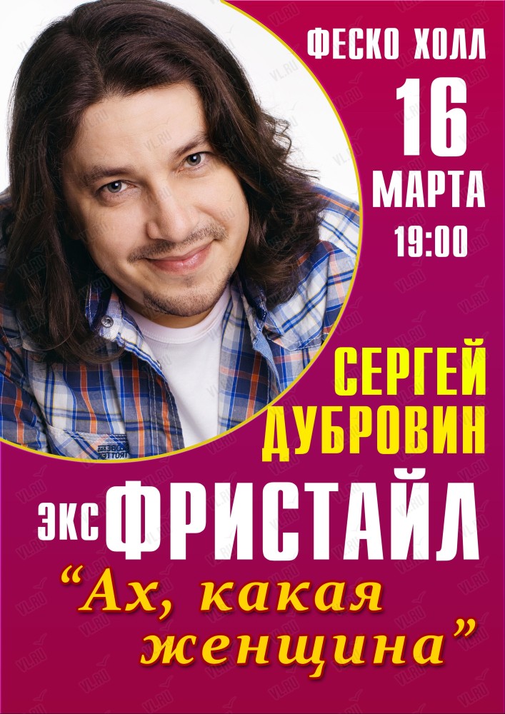 16 марта на сцене FESCO Hall состоится концерт экс-солиста группы "Фристайл" Сергея Дубровина с программой "Ах, какая женщина!".