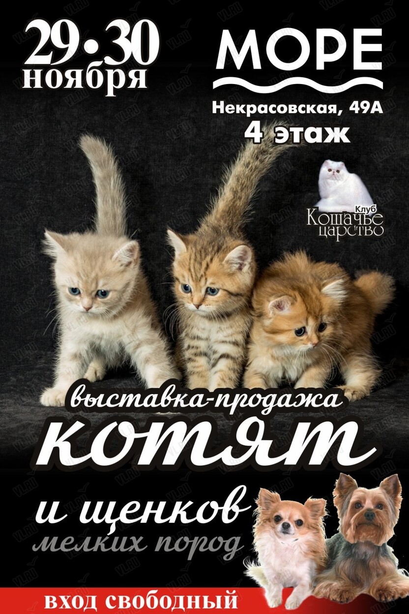 29-30 ноября в ТДЦ «Море» на 4 этаже будет проводиться эксклюзивная выставка самых красивых котят и щенков мелких пород.