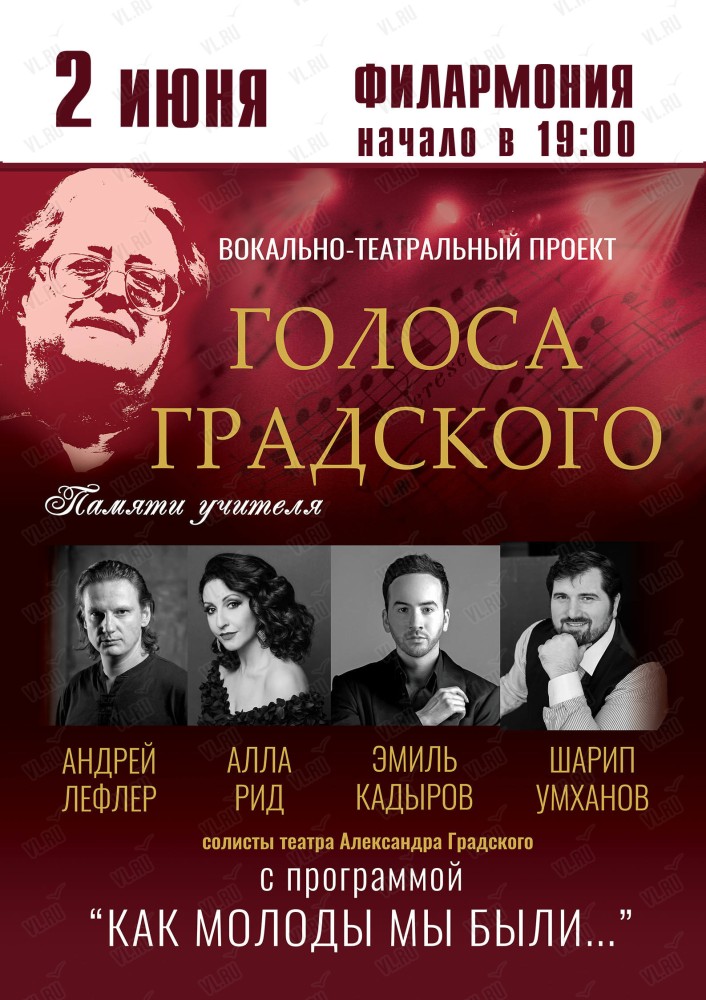 2 июня 2022 года в Приморской краевой филармонии пройдет концерт памяти Александра Градского.