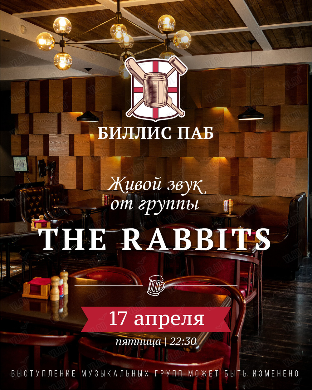 Английский паб «Биллис паб» приглашает на выступление группы Rabbits!