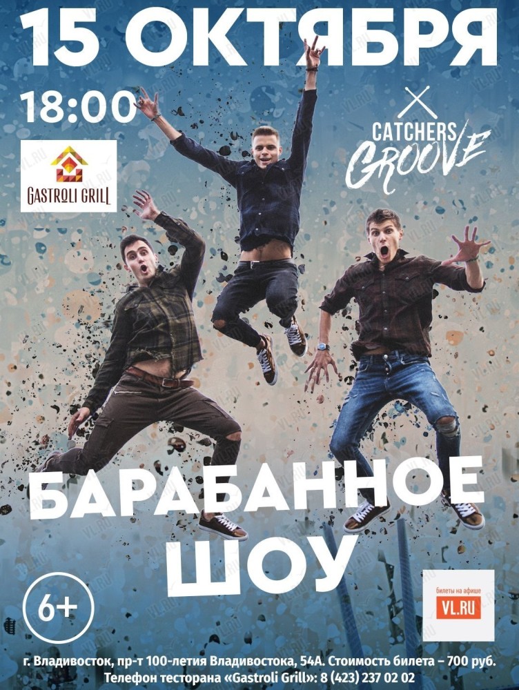 15 октября музыкальное барабанное шоу Catchers Groove приглашает давних поклонников и новых друзей на большой концерт в Gastroli Grill.