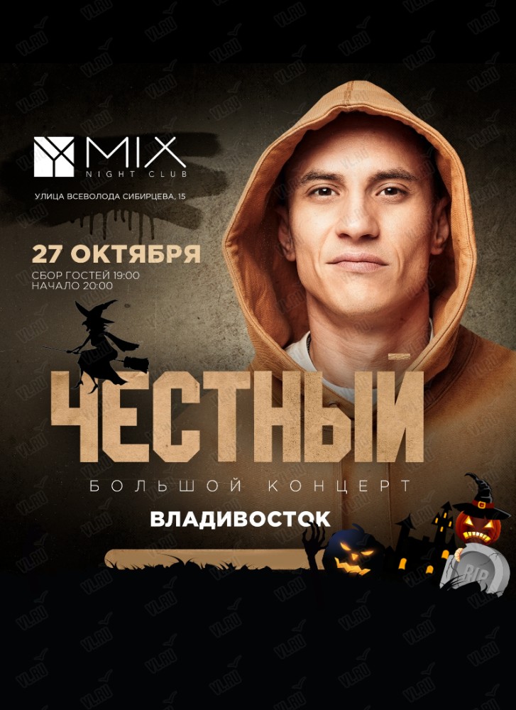 27 октября в клубе Mix выступит Честный (Тимур Гатиятуллин) с большим концертом во Владивостоке!