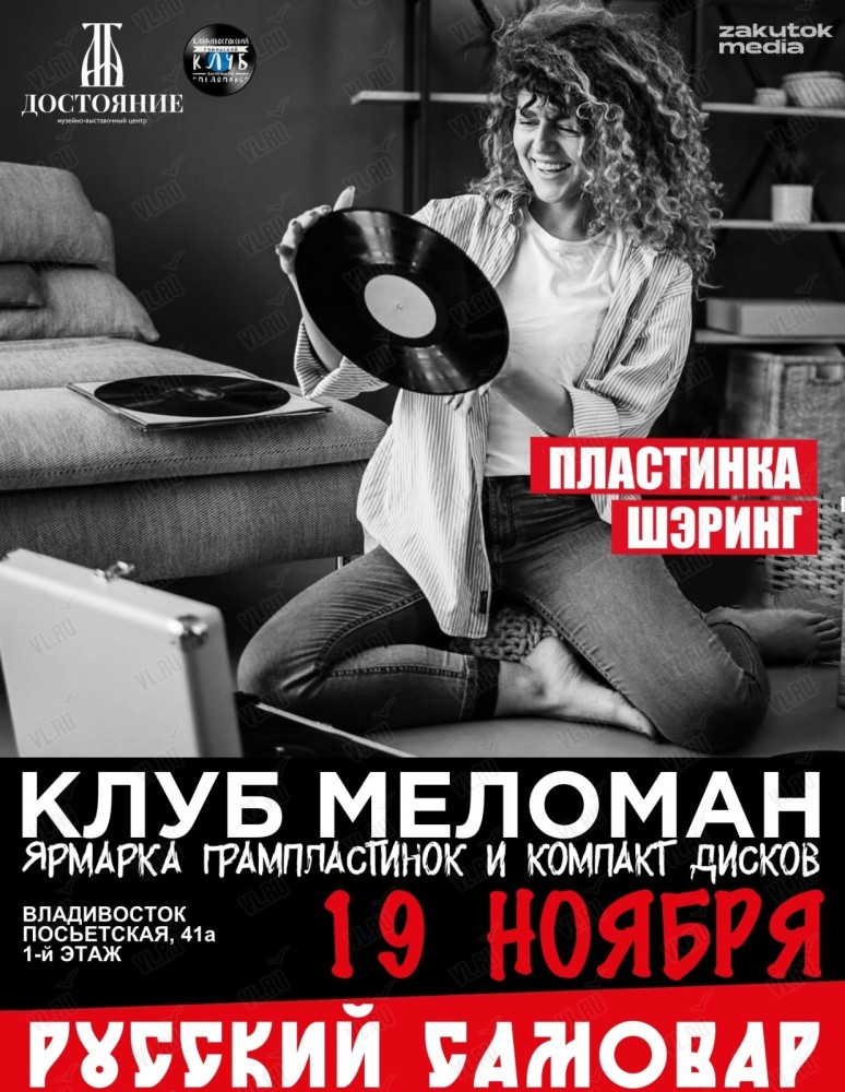 Владивостокский городской клуб филофонистов "Меломан" и музейно-выставочный комлекс "Достояние" приглашают на большой пластинка шеринг* грампластинок.