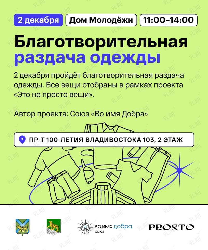 Союз благотворительных и социальных организаций «Во имя добра» приглашает на зимнюю благотворительную раздачу одежды - 2 декабря