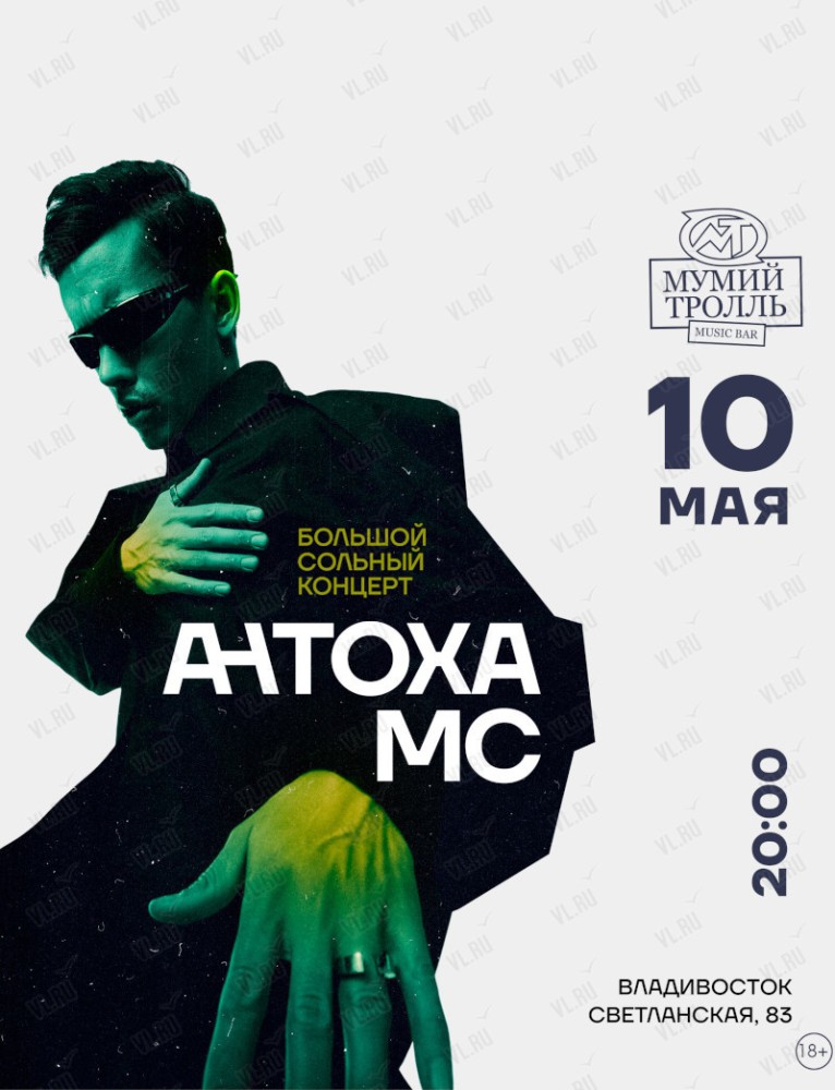 10 мая на сцене "Мумий Тролль Music Bar" выступит Антоха МС!