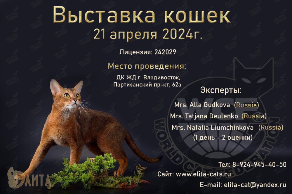 Клуб Элита приглашает 21 апреля принять участие в международной выставке кошек по системе WCF!