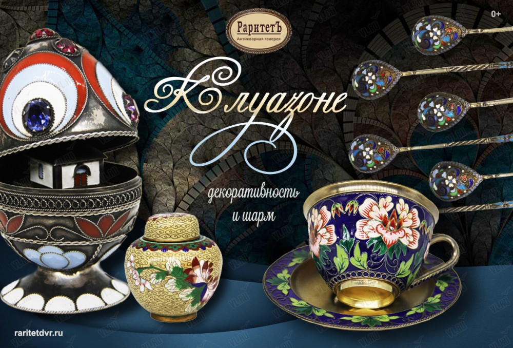 Антикварная галерея «Раритет» приглашает посетить экспозицию декоративных произведений, созданных с использованием техники клуазоне.