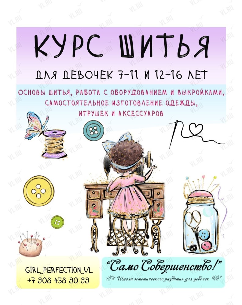 Школа «Само Совершенство» приглашает девочек в группы от 7 до 11 лет на курс по кройке и шитью.