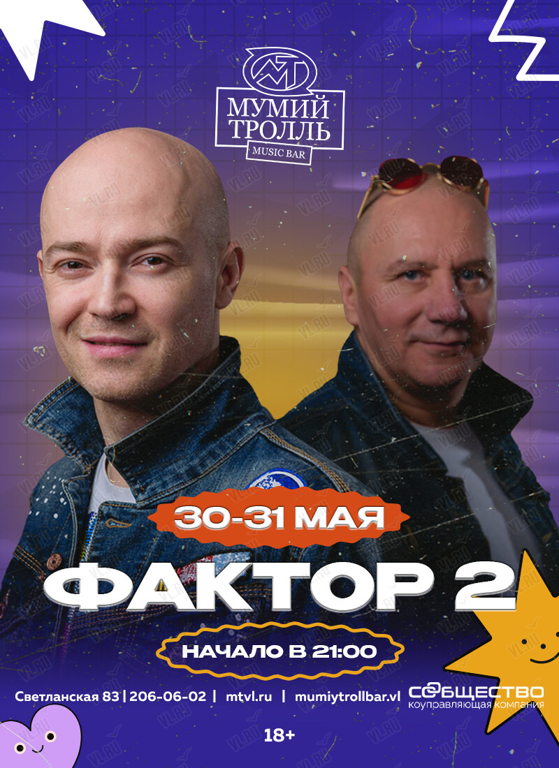 30 и 31 мая на сцене Мумий Тролль Music Bar - группа «Фактор 2»!