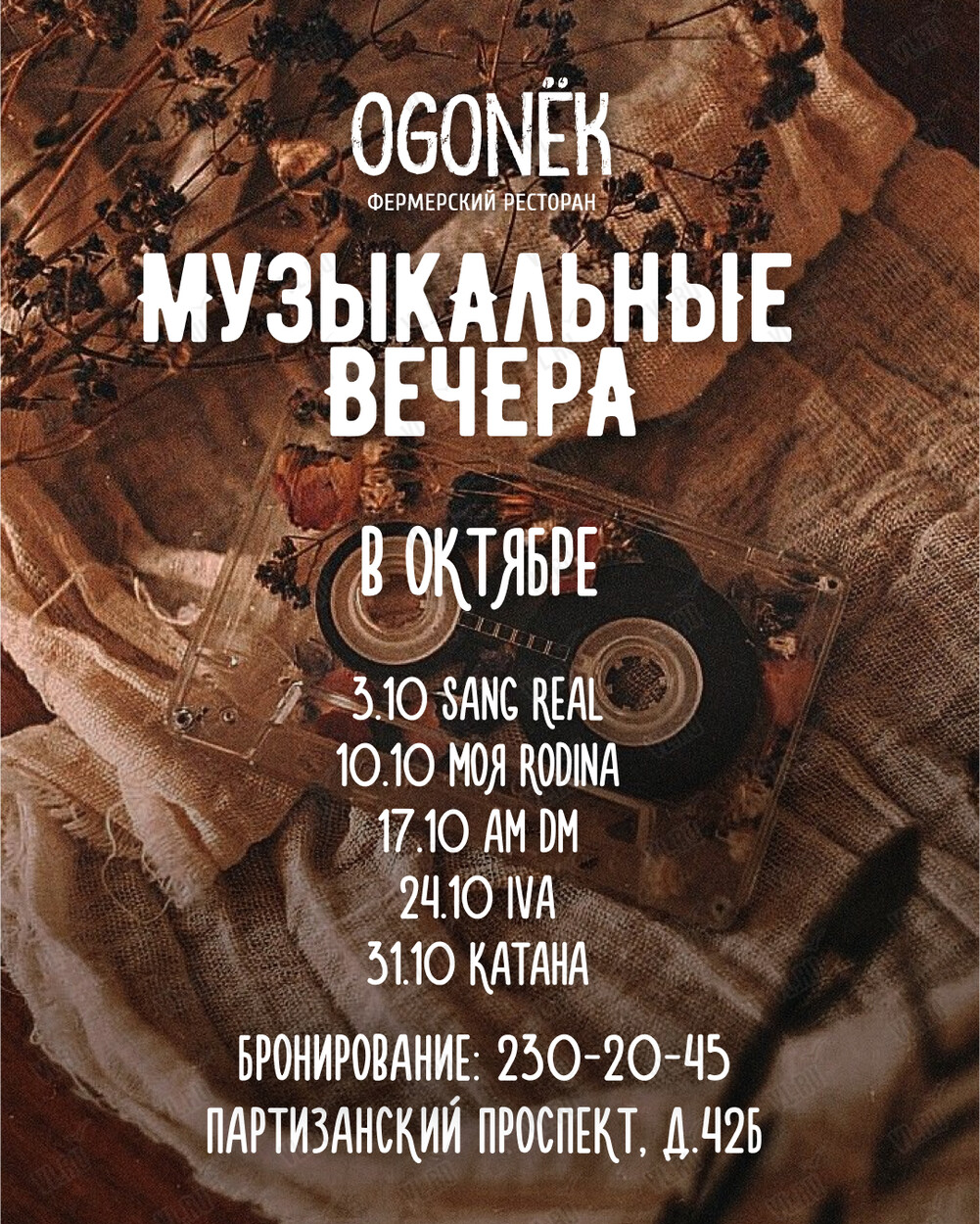 Фермерский ресторан «Огонёк» приглашает на музыкальные вечера этого октября!