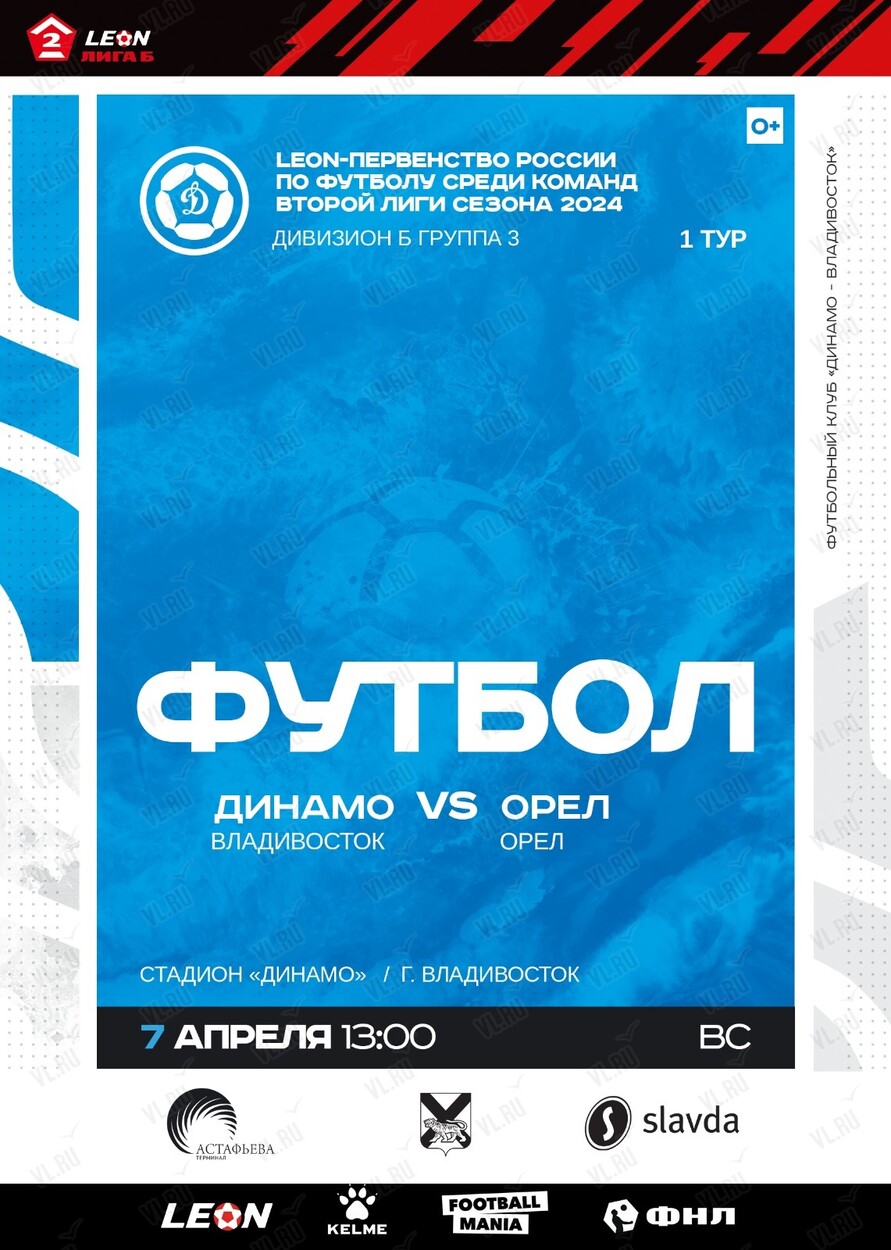 7 апреля на стадионе «Динамо» состоится матч первого тура Второй лиги «Б» – «Динамо-Владивосток» сразится с ФК «Орел».
