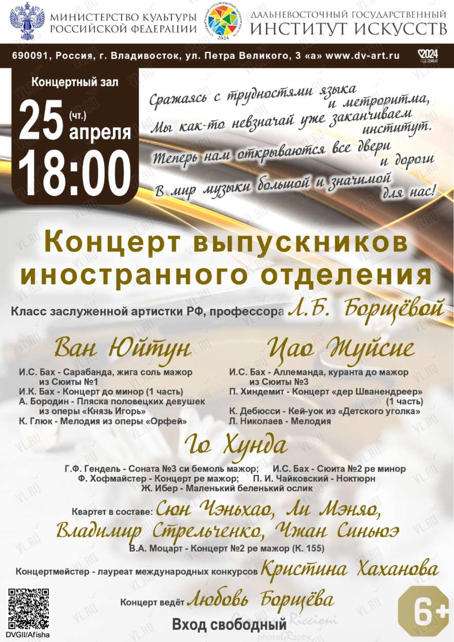 25 апреля в концертном зале ДВГИИ пройдет концерт выпускников иностранного отделения.