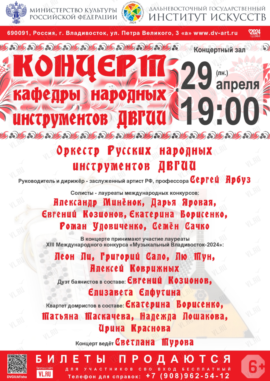 Кафедра народных инструментов ДВГИИ приглашает 29 апреля на концерт студентов и преподавателей.