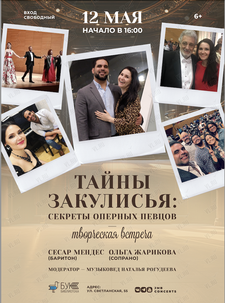 12 мая в 16:00 в библиотеке им. А.С. Пушкина (БУК) состоится творческая встреча с оперными певцами – сопрано Ольгой Жариковой и баритоном Сесаром Мендесом!