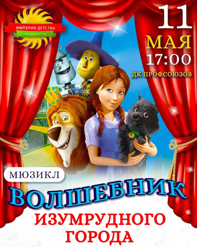 11 мая на сцене ДК Профсоюзов – премьера: мюзикл «Волшебник Изумрудного города» от шоу-студии «Империя детства»!