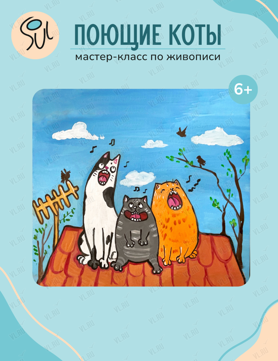 Арт-пространство «Soul» приглашает детей и взрослых на мастер-класс по живописи гуашью или акрилом картины «Поющие коты».
