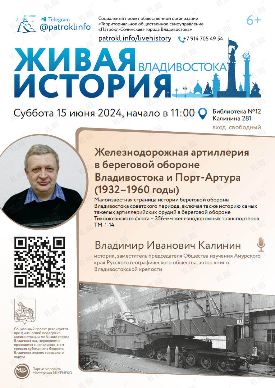 Публичная лекция "Железнодорожная артиллерия в береговой обороне Владивостока и Порт-Артура (1932–1960 годы)" в рамках социального проекта "Живая история Владивостока" от ТОС "Патрокл-Сочинская".