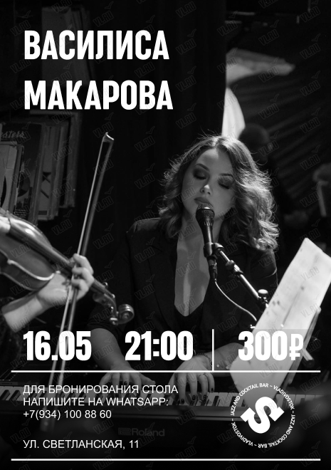 16 мая на сцене джаз-бара Syncopa – Василиса Макарова!