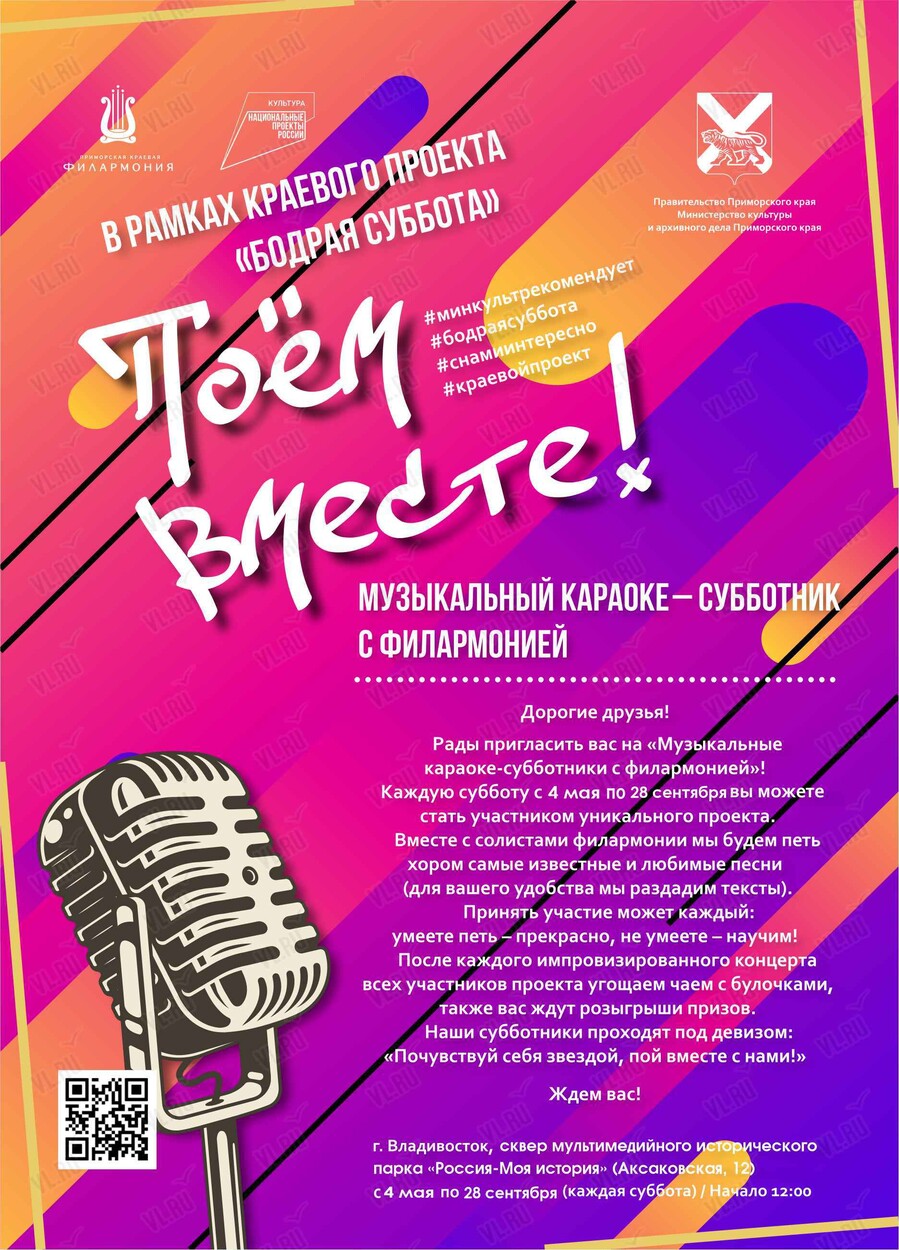 Каждую субботу с 4 мая по 28 сентября в сквере мультимедийного исторического парка «Россия - Моя История» проект «Музыкальные караоке-субботники с филармонией»!
