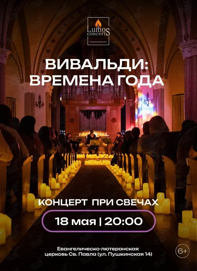 Музыкальный проект «Lumos concerts» 18 мая представит концерт при свечах «Вивальди. Времена года» в Церкви св. Павла - одном из самых атмосферных мест города Владивостока!