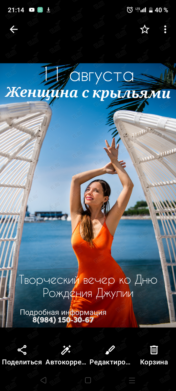 11 августа в Ikra club пройдет праздничный творческий вечер "Женщина с крыльями", посвящённый 33-летию Джулии (07.08.1991)!