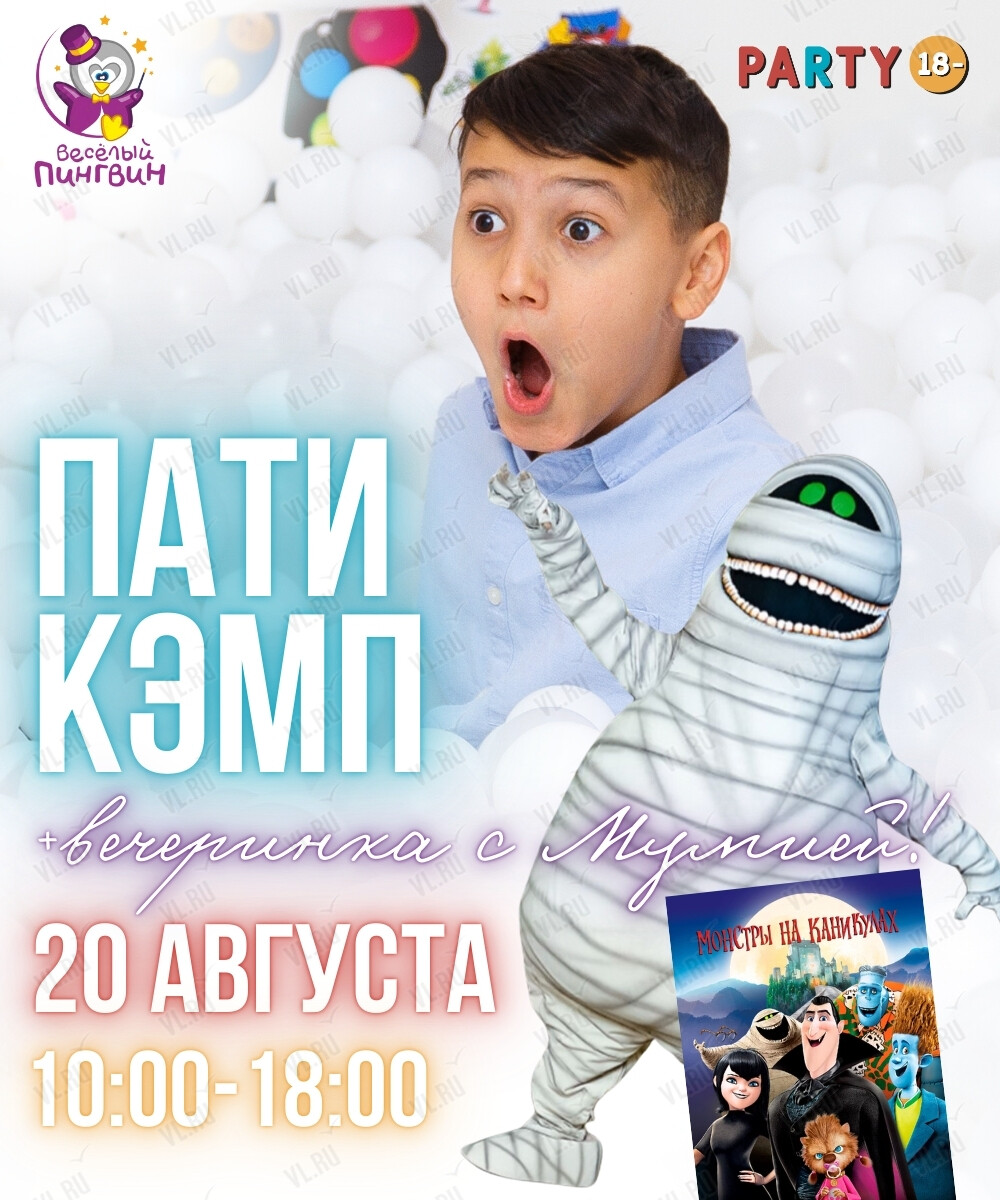 Центр детских вечеринок Party 18- приглашает 20 августа в городской лагерь-вечеринку "Пати Кэмп" для детей от 5 до 10 лет!