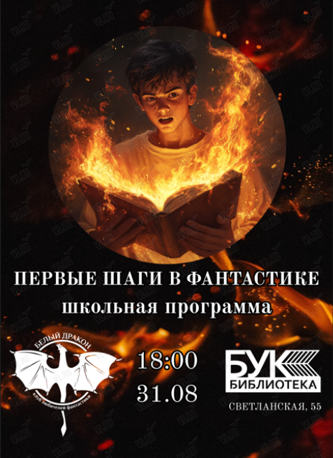 31 августа в 18:00 в библиотеке БУК состоится встреча клуба любителей фантастики «Белый дракон». Тема — «Первые шаги в фантастике: школьная программа».