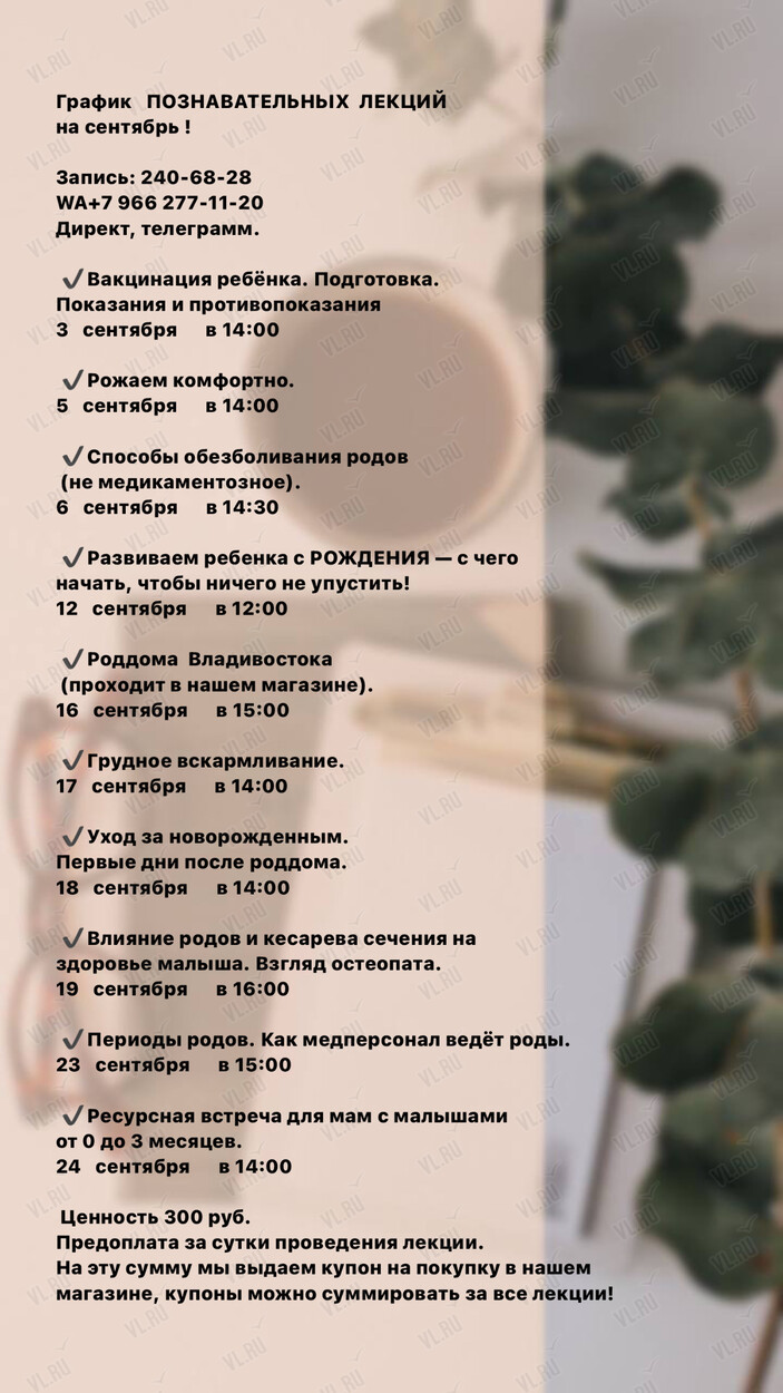 16 сентября в 15:00. Роддома Владивостока (проходит в нашем магазине).