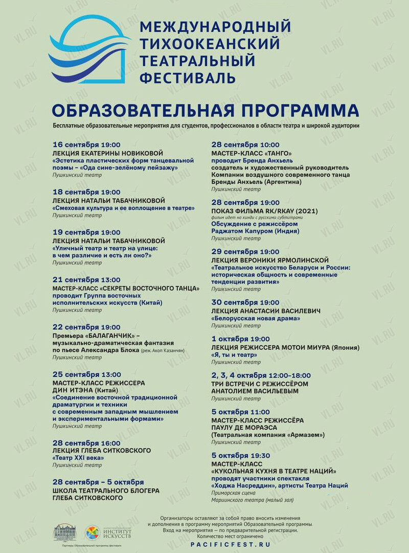 В рамках III Международного Тихоокеанского театрального фестиваля пройдет обширная Образовательная программа!