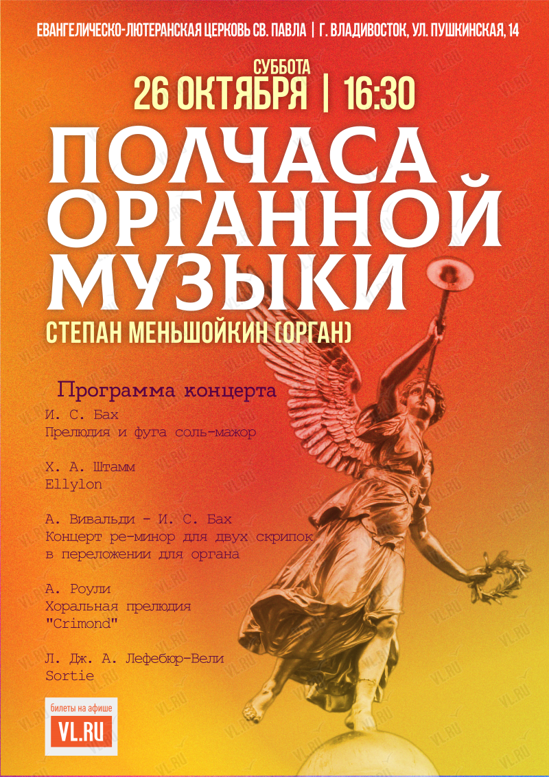 26 октября в Церкви св. Павла – концерт «Полчаса органной музыки»!