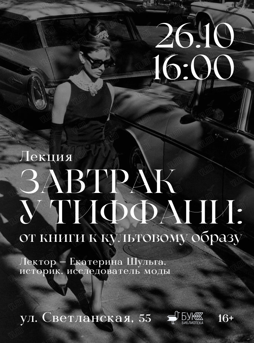 26 октября в 16:00 в библиотеке БУК состоится лекция «Завтрак у Тиффани: от книги к культовому образу».