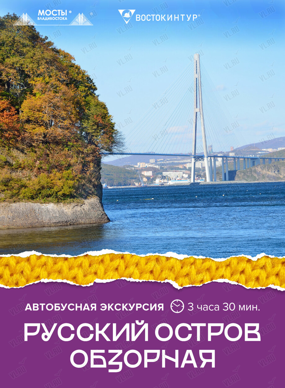 Знакомимся с Островом Русский, который славится своими морскими пейзажами, живописными бухтами, богатым растительным миром и природными памятниками. Необычайно интересна и его история, ведущая отсчет от начала нового тысячелетия. Обзорная экскурсия - это небольшое автобусное путешествие по главному острову архипелага, расположенного в окрестностях Владивостока. Помимо автобусного прохождения маршрута предусмотрены небольшие пешеходные проходы, будь то выходы на видовые обзорные площадки, или прогулка на берегу моря. Именно такое сочетание позволяет ближе познакомиться с богатым природным разнообразием и топонимикой острова Русский. Его освоение и развитие теснейшим образом увязаны с городом, но имеет несомненные особенности. Рассмотрение этих особенностей в различные исторические периоды, от позднего палеолита, первого государственного образования и до начала 21 века, представлено широким визуальным рядом, документами, фотографиями. Основу программы составляет посещение Новосильцевской батареи и пос. Канал в северной части острова. Следуя с севера на юг, мы знакомимся с объектами ДВФУ, Академии МЧС, командным пунктом Ворошиловской батареи. Небольшое восхождение на гору Вятлина, прогулка по Великокняжеской батарее.